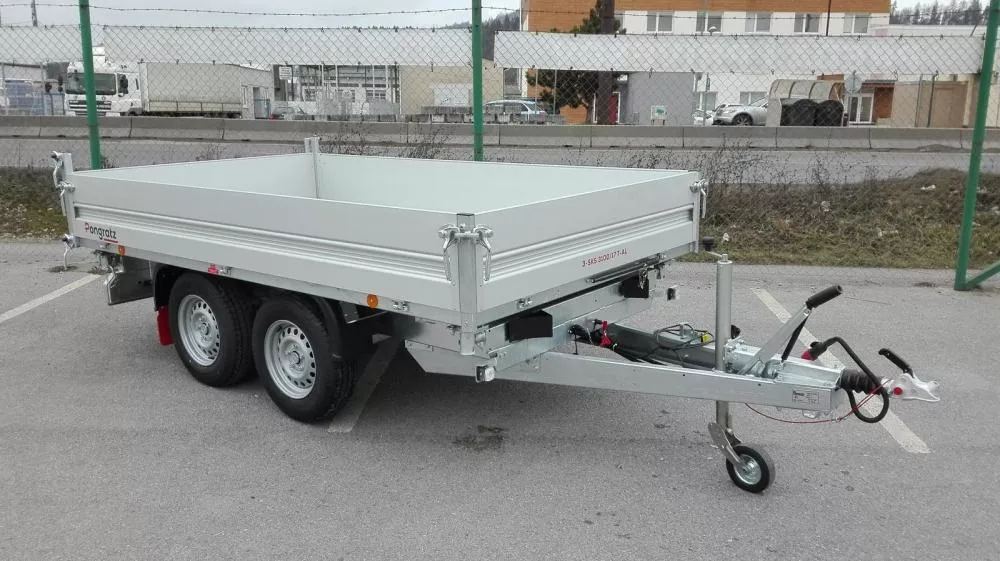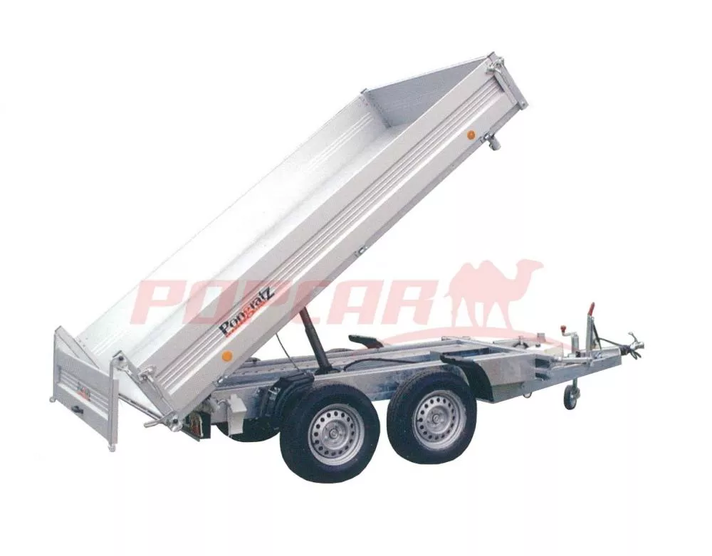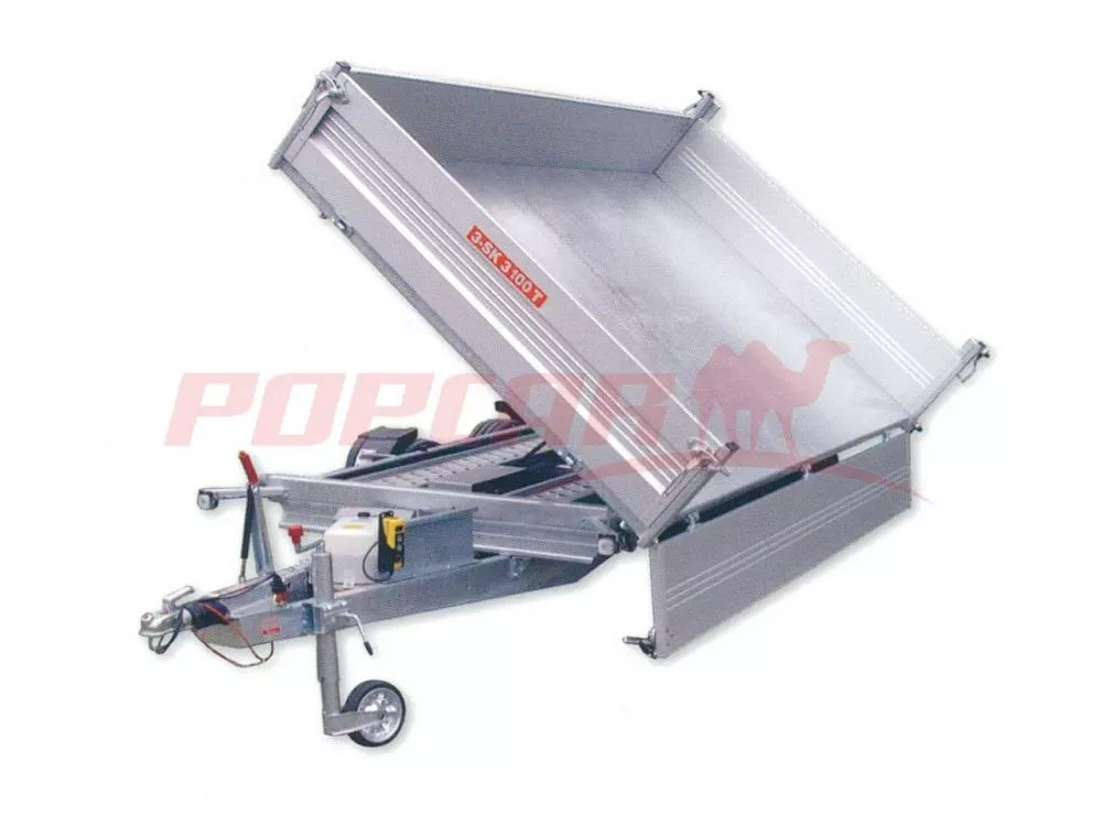 Trojstranný sklápač Pongratz 3SKS 3100/17 T-AL, 3500 kg – vhodný najmä na prevoz sypkých materiálov, piesok, štrk a pod. Sklápač Pongratz má v základe elektro kombi hydraulickú pumpu, zadné kývne čelo (podsyp), pozinkovanú plechovú podlahu, kotevné oká na upnutie nákladu, uloženie nájazdov pod ložnou plochou. Vynikajúce jazdné vlastnosti – prívesy Pongratz sú opatrené ojom v tvare písmena „V“, ktorá v kombinácii s tuhým podvozkom, nezávislým zavesením nápravy s torznými tyčami a osvedčeným typom kolies a pneumatík zaisťuje vynikajúce jazdné vlastnosti. Možné doplniť o tlmiče AL-KO.